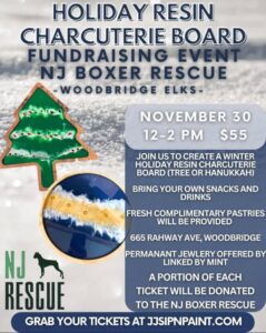 Holiday Resin Charcuterie Boards benefiting NJ Boxer Rescue October 27, 2025 No Comments 🎄HOLIDAY CHARCUTERIE RESIN BOARD PROJECT🕎 We would like to invite you to our 1st Charcuterie Board Project Event that will Read More »